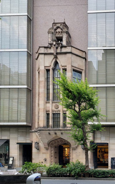 この前面のファッサードは、旧ビルから建て替える際に、この部分を残してレトロフィットしたものです。旧ビルは耐震が不十分として建て替えることになりましたが、昔を懐かしむ方々からは残して欲しいという要望も数多くあったようです。室内の大サロンとか食堂、会議室は復元されたようです。