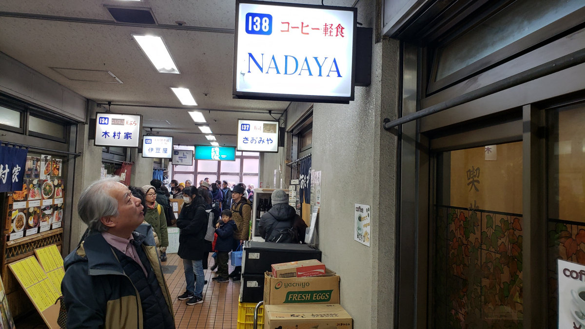 〆にさがみや隣のコーヒーショップでお茶。喫茶店のお客は市場の従業員らしき人しかいません。