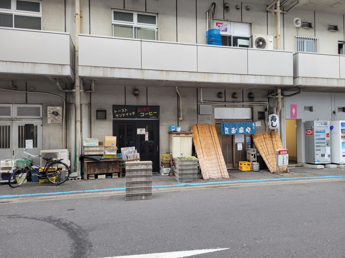 食堂街の建物の中には水産物を扱う店もあり出川哲朗の兄が海苔を販売している蔦金商店があるはずと見にいったが休店中で実家の方で営業しているとのことだった。(け)