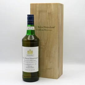 大麦麦芽だけを材料にしたのを「モルトウイスキー」、とうもろこし等の穀類を材料にしたのを「グレーンウイスキー」と言います。このモルトウイスキーとグレーンウイスキーを混ぜたものは「ブレンデッドウイスキー」と言って、広く世の中で販売されているのがこのウイスキーで、一般的には低価格品が多いです。但し、中には最高級とされるブレンデッドウイスキーもあり、「ロイヤルハウスホールド」は私の大好きなウイスキーの1つです。「ロイヤルハウスホールド」は英国王室ご用達の唯一のウイスキーで、特別に選りすぐられたモルトとグレーン原酒45種以上から造られたブレンデッドウイスキーで英国のみしか販売できませんでしたが、昭和天皇が皇太子時代に英国王室を訪問し飲んで非常に気に入られた事から、日本だけには販売が許可されたというウイスキーです。特に、名前の前にTHEが付けられた「ザ・ロイヤルハウスホールド」は特に厳選された最高級品とされ、通常品の数倍の価格(10万円以上)となっています。