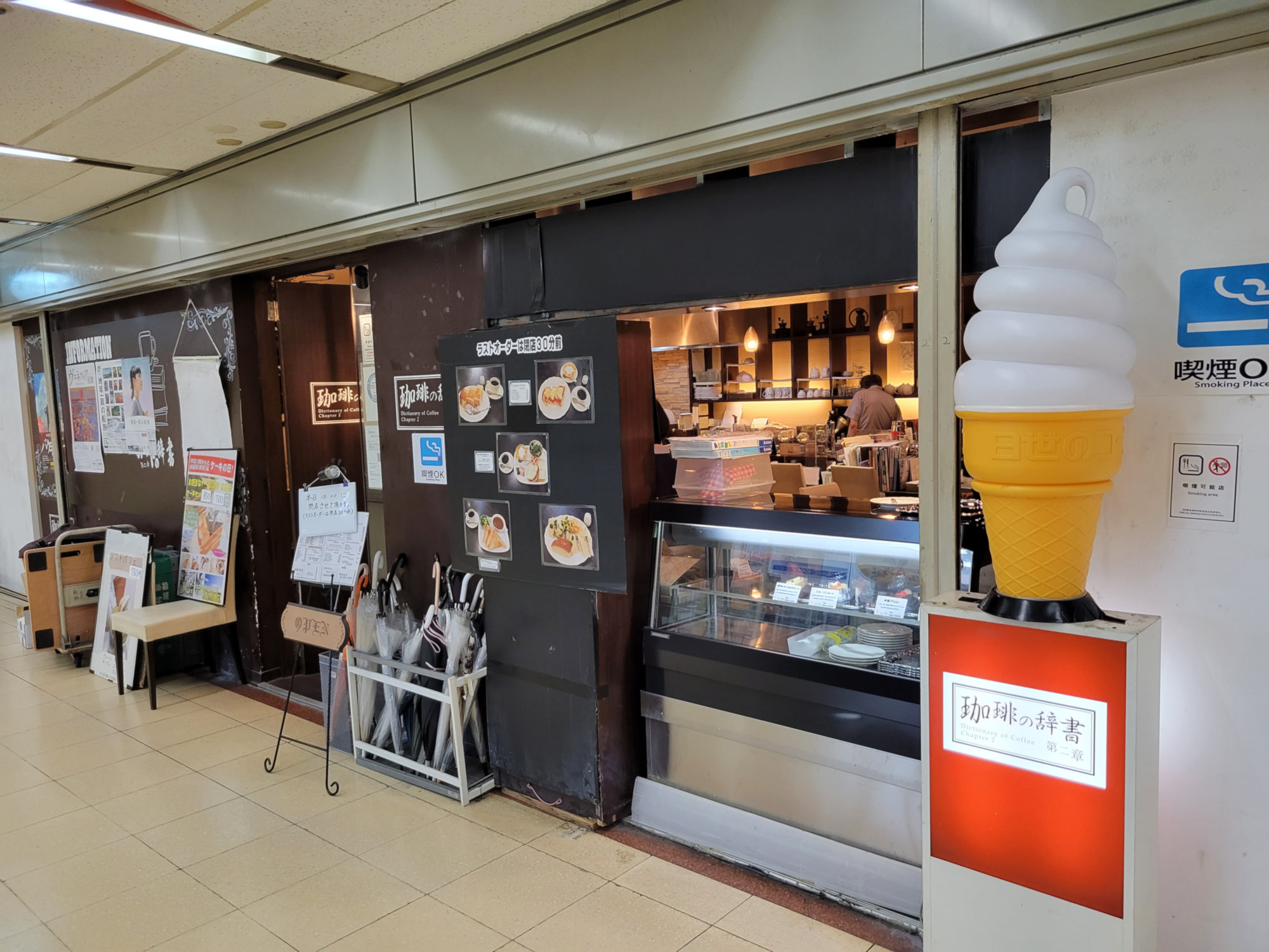 合間合間に大阪のレトロな喫茶店めぐりもしたいとの事だったので大阪駅前第1ビル~第4ビルの地下街にある喫茶店をいくつか紹介しておいた。ここは大阪駅の端から端までの間に点在しているビルだが地下ではつながっていて、昭和のレトロ感が濃い町の商店街と飲み屋街が集合したような地下街となっている。構造的にはいくつかの通り・路地がありさらに地階ありでちょっとしたダンジョン(地下迷宮)となっている。