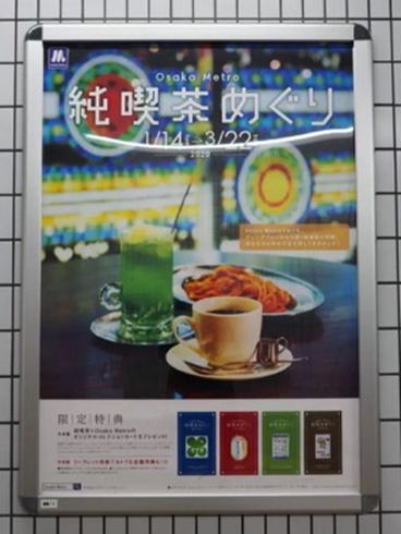 入口のスタンド台にかざってあったのが2020年に開催された「大阪メトロ純喫茶めぐり」のリーフレットとコレクションカード。大阪メトロ周辺の喫茶店32店が参加して実施されたもの。ちなみにCacco氏の紹介したリスボンも参加、リーフレットを持参して各々の店を訪れるとその店のカード配布と独自の特典が受けられたとの事。企画はとっくに終わっていたがカードの在庫がある所は今もいただけるとの事でゲットした。