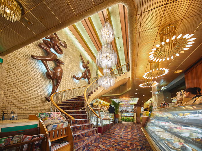 中に入って目を引くのが豪華なシャンデリアと螺旋階段。壁には彫刻やらポスターなどアートな作品が多々飾られているのでじっくり観たら結構な時間をつぶせるだろう。この店ふだんは結構込み合っているらしいが