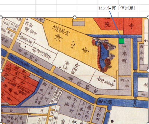 なお、にゃんにゃん横丁沿いではないが、<雀、蛤になる>で出て来る、冒頭の絵図に示した材木仲買「信州屋」(同定できた唯一の場所)や、<恩返し>に出て来る弁天湯も山本町のどこかに所在している。