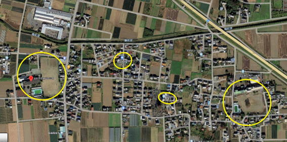 最後に、現在の「西畑」あたりの写真を見てみましたが、官舎らしきものは一つもなく、ちらりほらりと一戸建てが見えます。そのほかは麦畑になっているみたい。地名も西畑ではなく、蓮沼に変わっていました。合併された様です。
