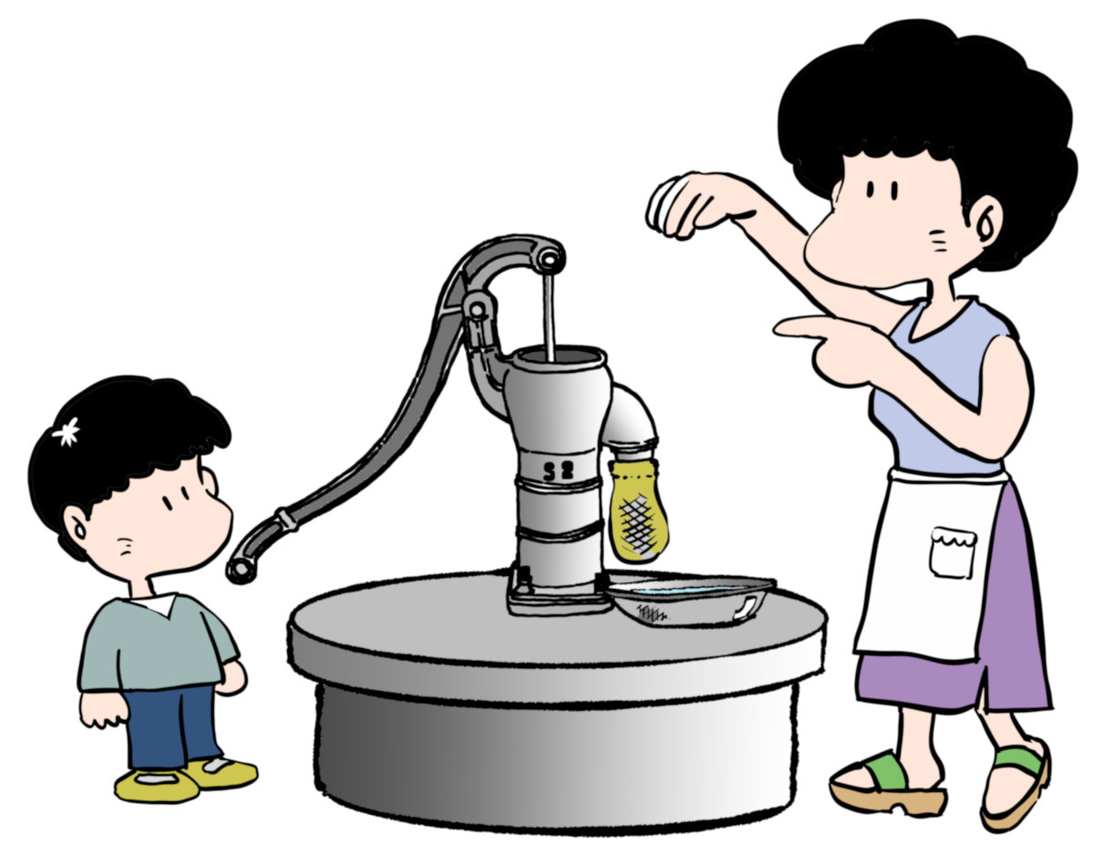 うさおの絵 家の中に井戸があった
