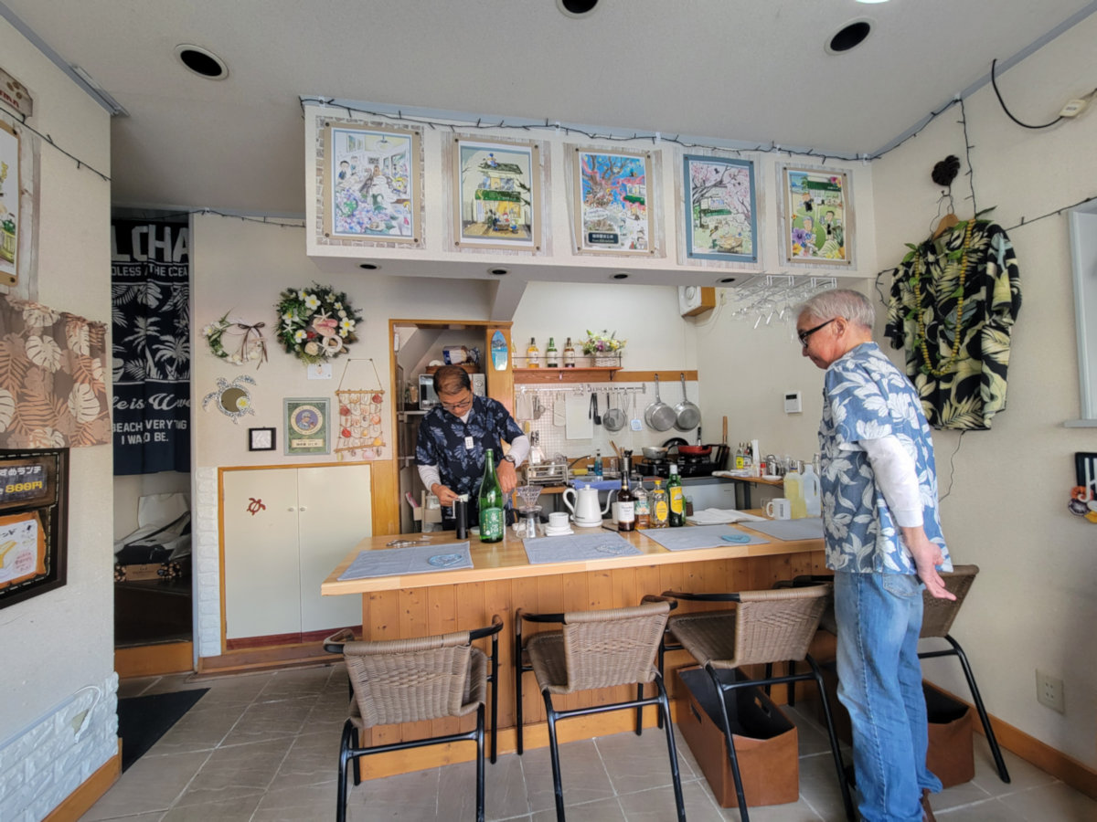 店長さんが浦島中学校の卒業生なので、地元のご友人たちが色々お手伝いをしてくれるのだそうです。ハワイが大好きな66歳で、店内にはハワイグッズと石垣島の写真が掛かっていました。