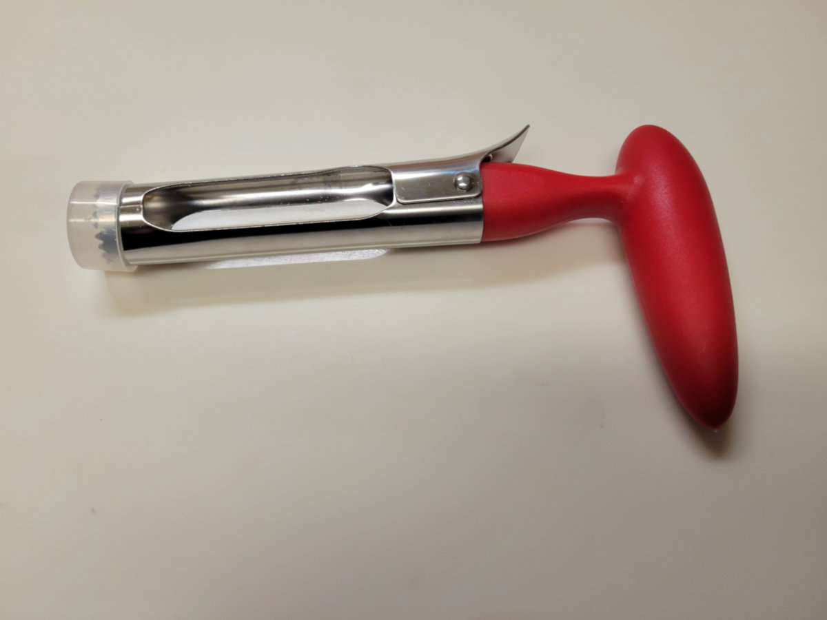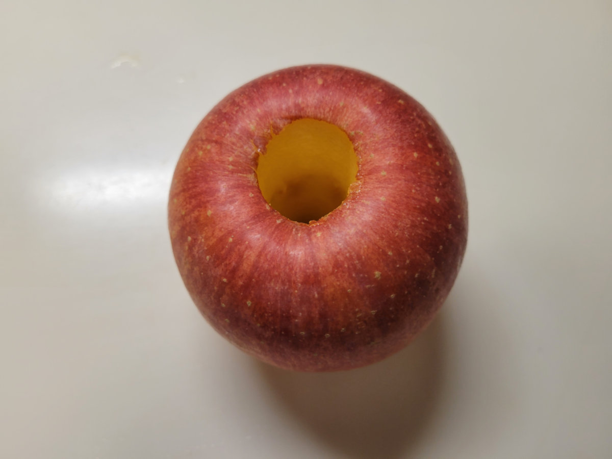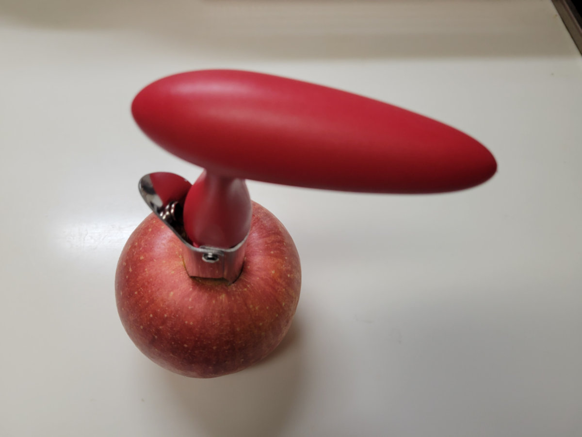 前に試みた時に丸ごとの林檎に楊枝でプスプス穴を開けて、電子レンジで熱して食べてみましたが芯が残って往生しました。今度は芯抜き機を用意します。百円均一のお店で売っているそうですが近所のお店では売っていませんでした。amazonで頼んじゃいました。