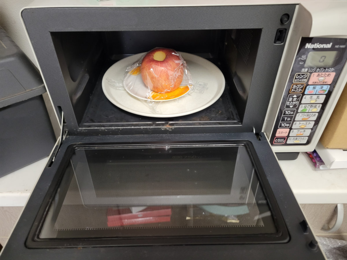 という訳で以前にM上さんから教えてもらった、電子焼き林檎を作ってみます。