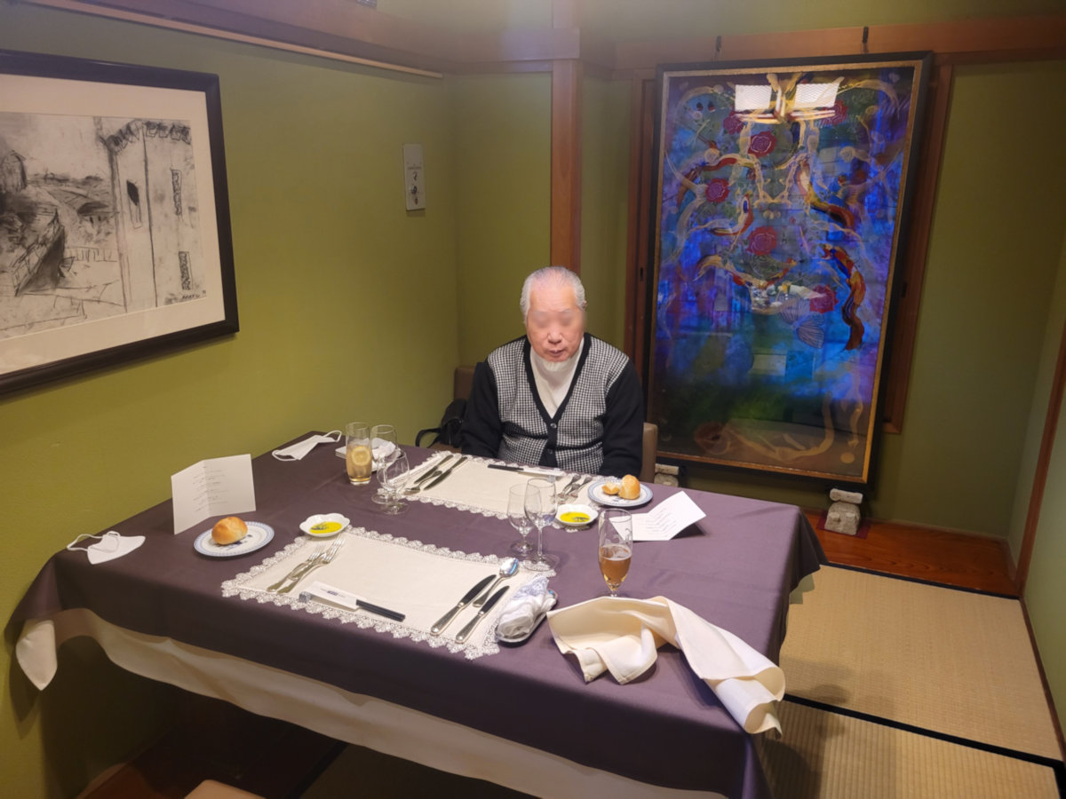霧笛楼 大皿の前のCacco 2024年12月6日