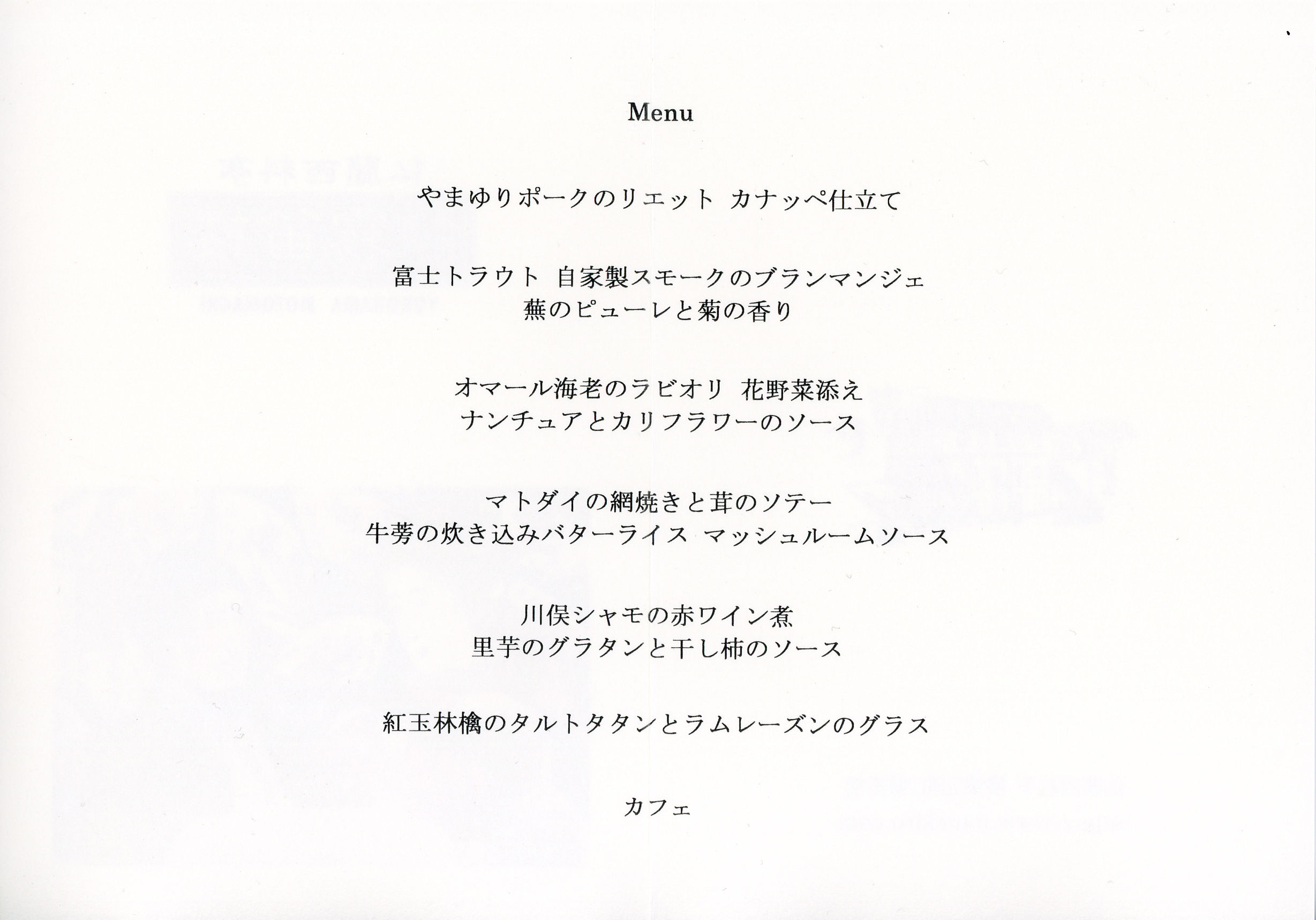 一応このランチ・メニューをご紹介しておきます。季節ごとに変化するようなので現在は違うメニューになっているかも。