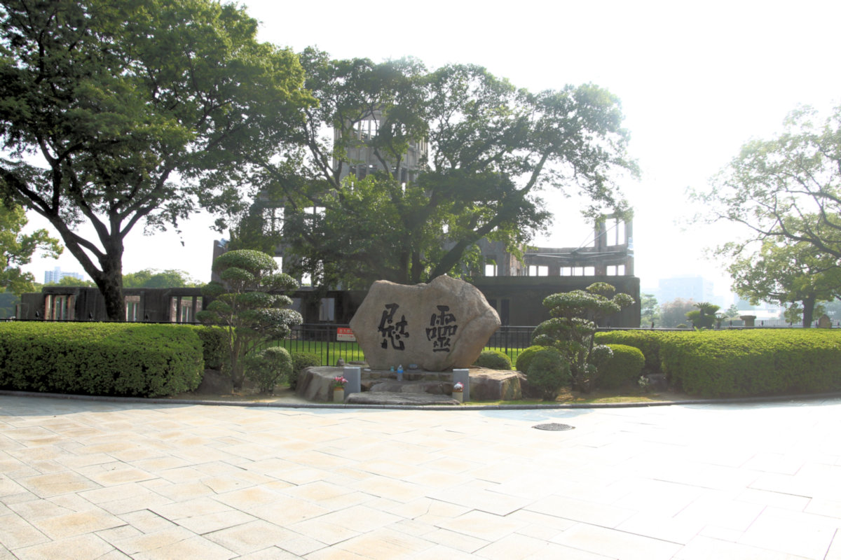 その一個の爆弾によって20万人をこえる人々の生命が失われ半径約2キロメートルに及ぶ市街地が廃墟と化した この悲惨な事実を後世に伝え人類の戒めとするため 国の内外の平和を願う多数の人々の寄金によって補修工事を施しこれを永久に保存する