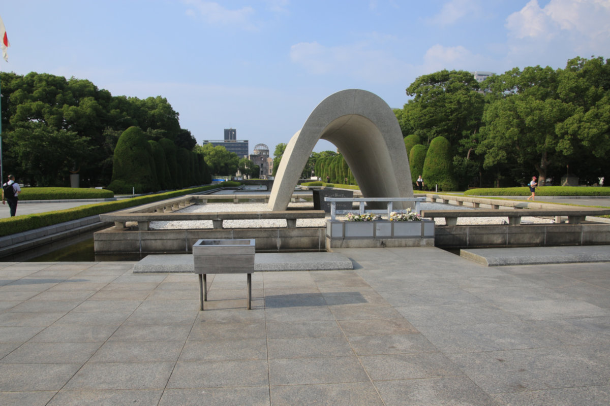 アーチの下に置かれているのが、原爆死没者慰霊碑です。