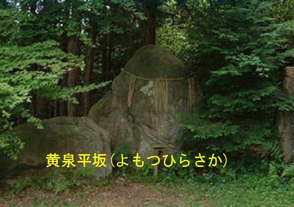 黄泉平坂とは、現世と黄泉の国(よみのくに) の境となる坂のことです。『古事記』では、「故、其の謂はゆる黄泉比良坂は、今、出雲国の伊賦夜坂と謂ふ。」とあります。この場合の坂とは、地底の死の国に降りていく地下道のことを言うのでしょう。太古の時代では人は死ぬと祟り神として変化(へんげ)すると考えられていました。別名、伊賦良坂(いぶらざか)ともいいます。