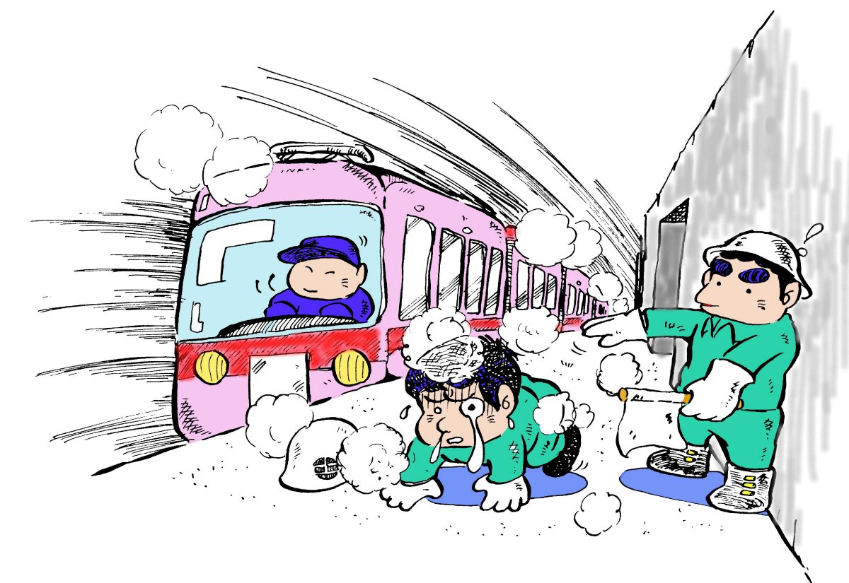 夏の蒸し暑い頃です。私は営団の仕事で、隧道の健全度調査に入った時のことです。終電車が通り過ぎ、饋電線(きでんせん:架線の電気)の停止後、駅ホームから軌道に降りました。
