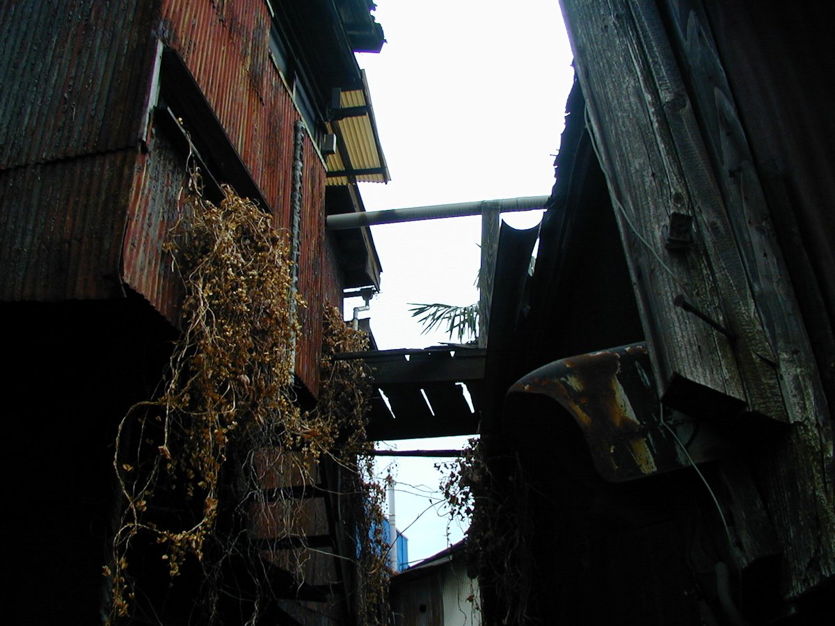 大口にあるこの廃墟も蔦に覆われています。蔦と錆びたトタンは必須アイテムです。でも最近の廃墟はみんなガラス窓が破られていません。これでは、人が住んでいるのか空家なのか判別が付きません。困ったものです。(何が!)