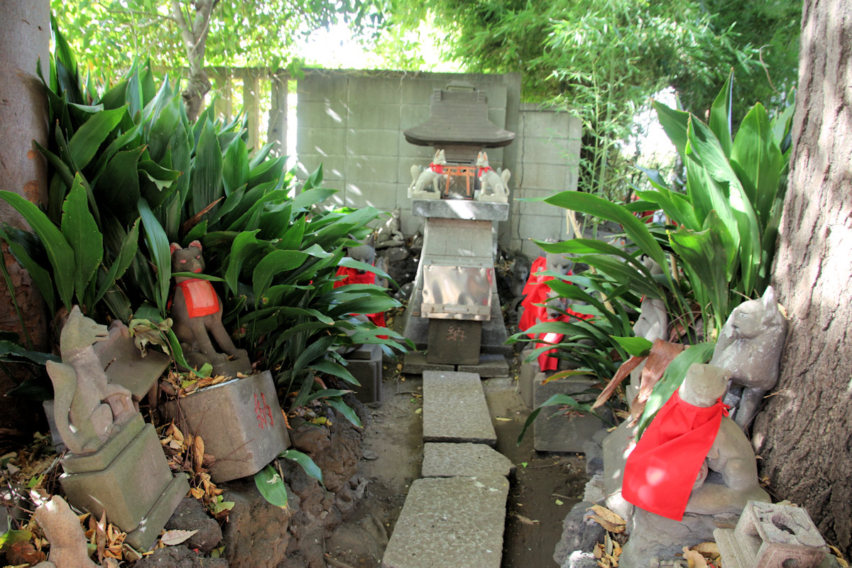 狐はお稲荷様の眷族(使い)であり、当神社を護るかのように建っています。