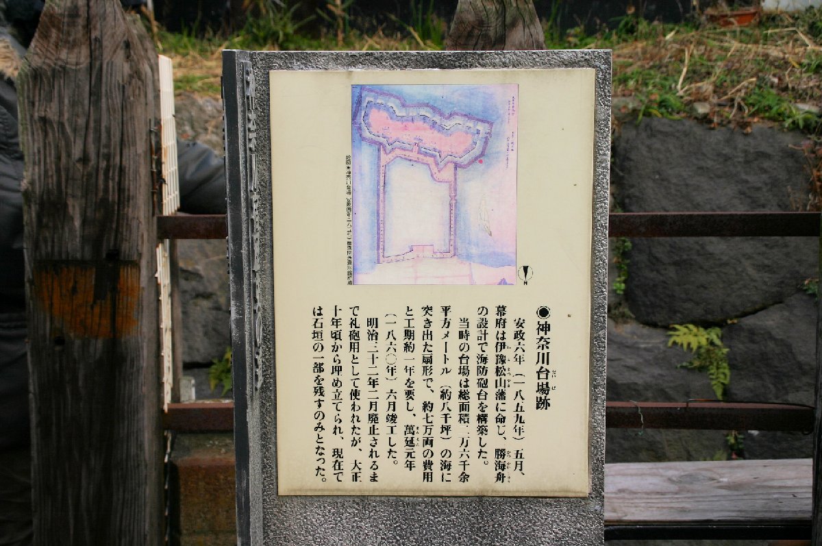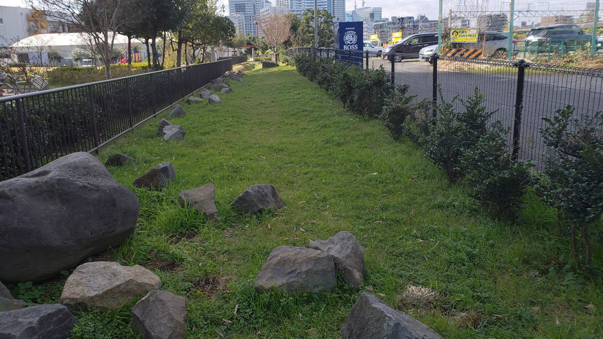 残念ながら、台場は明治時代末年から周辺地域の埋め立てが進んだため、現在では石組みの一部分が残されているにすぎない。しかし、平成十四(二〇〇二)年に横浜市教育委員会が台場跡地の試掘調査を実施し、土中にも築造当時の石組みが残されていることが確認された。