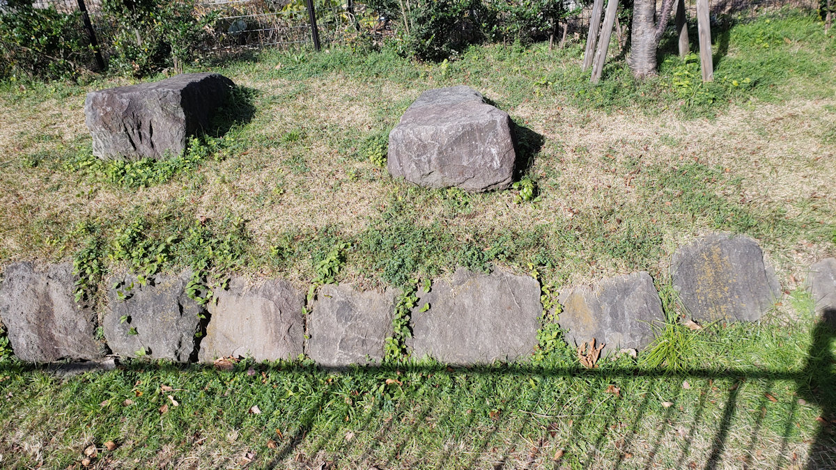 ここのロープで地取りされている所が、ご近所の人から聞いたところによると当該の箇所らしく、「なんか石積みが出てきたけど、また埋めたよ!」とのこと。