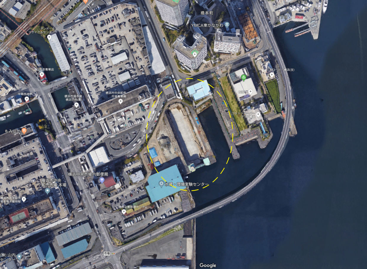 神奈川台場の南側 コットンハーバーの船渠跡 2018年12月15日 googleより