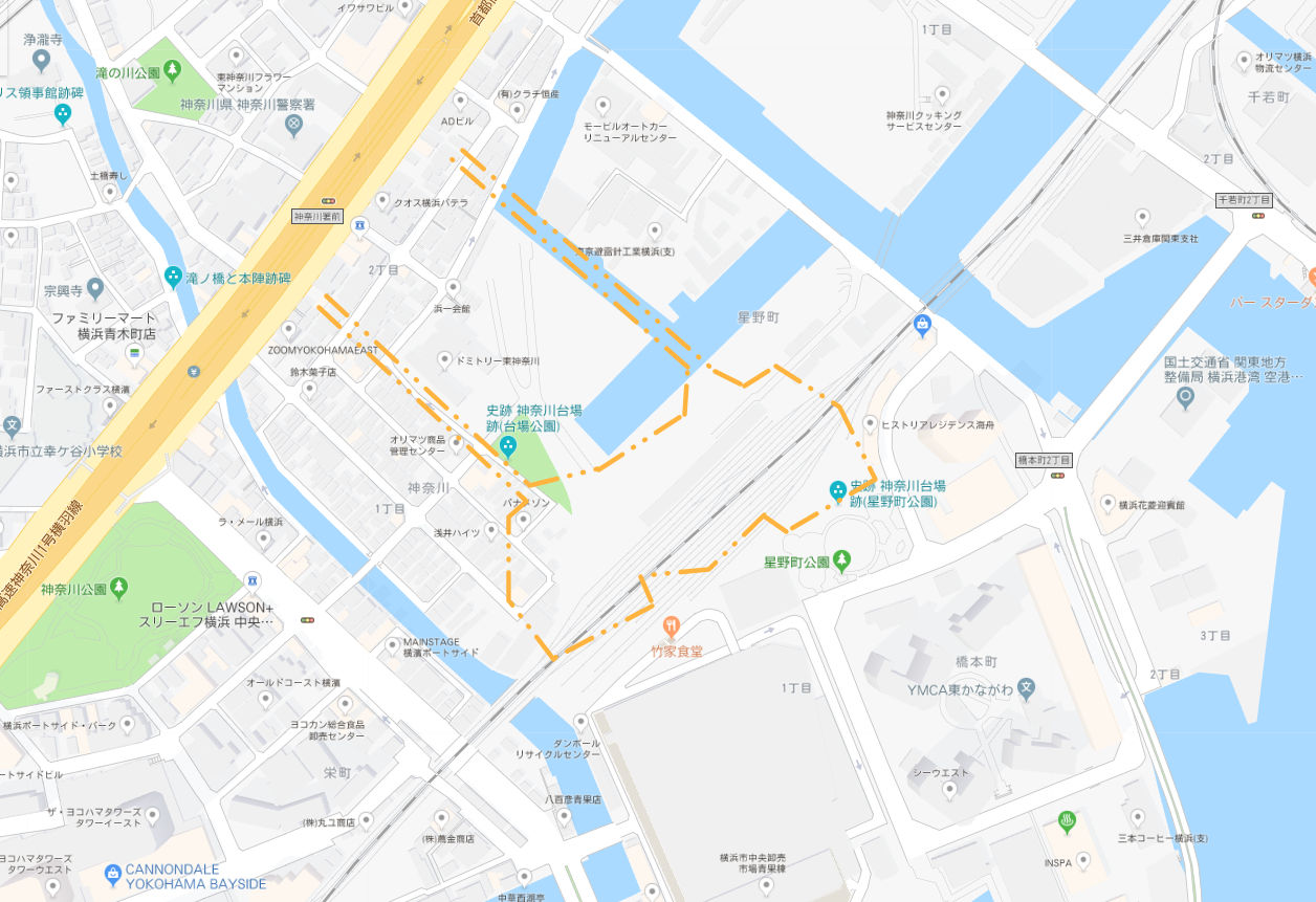 その綿花製品を輸出する際の倉庫、検査場が綿花町にありました。今でいうと、東高島駅の西側で、神奈川台場の根本あたり、やや北側にありました。
