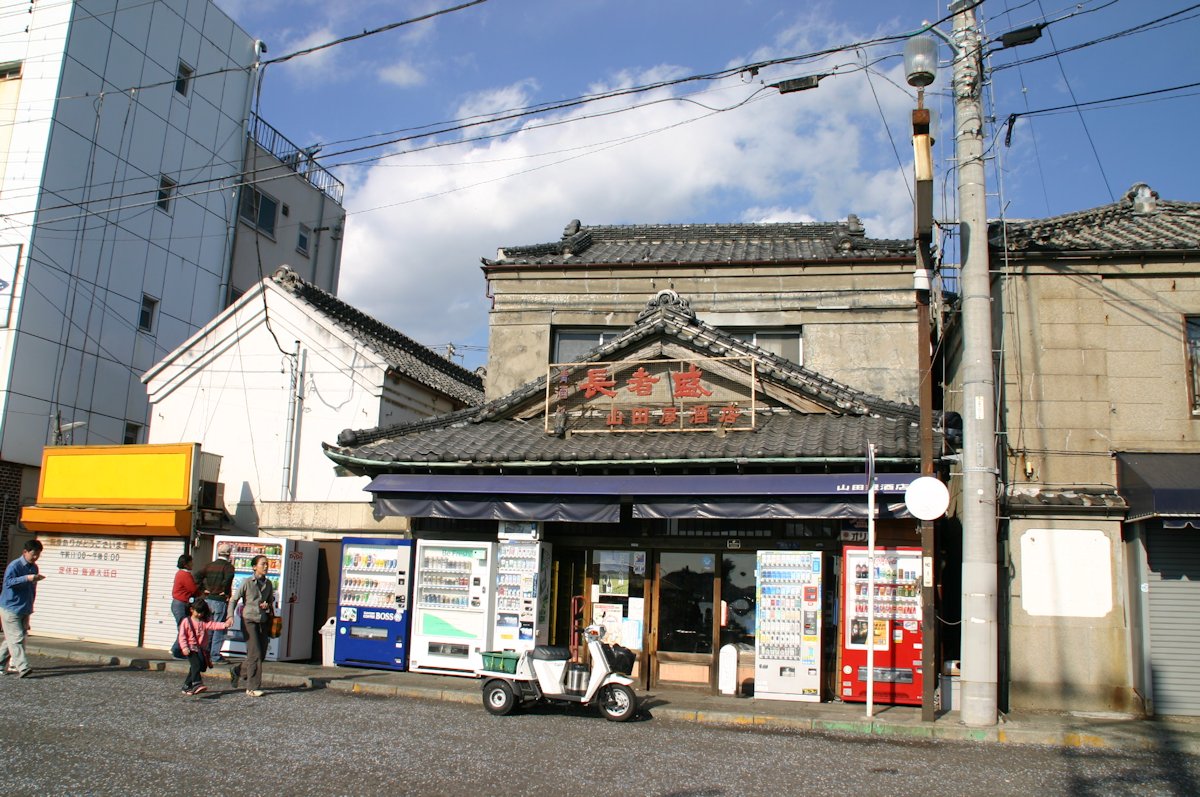同じく由緒のありそうな酒屋さんがありました。山田屋酒店です。港町は潮の影響を受けるせいか、石造りのお家が多く、ここも裏に蔵を控えていました。