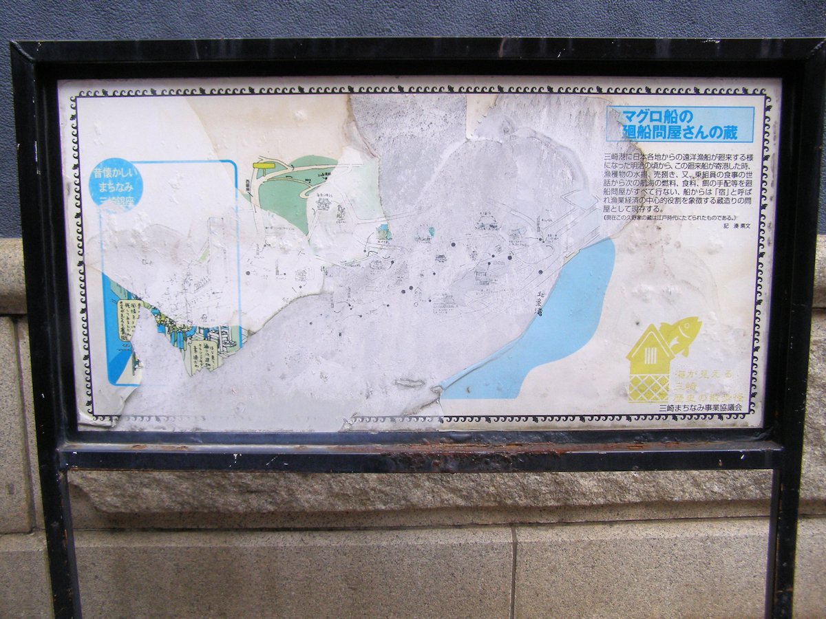 散策の途中で出会ったこのお店は、江戸時代から続くマグロ船の海鮮問屋の蔵だそうで、店の前に由来の看板がありました。