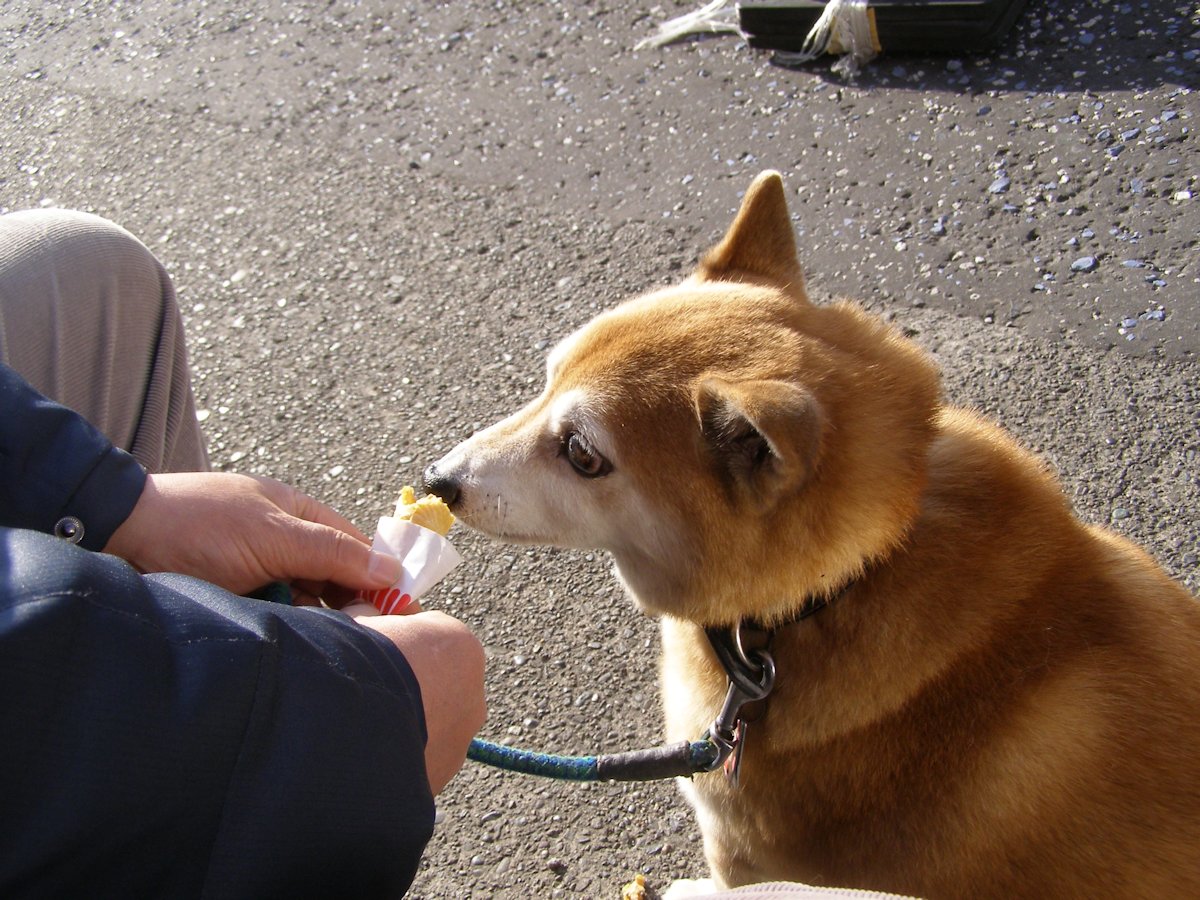 千葉幕張のカルフールのときはピザを貰いました。メタボ犬になる訳です。