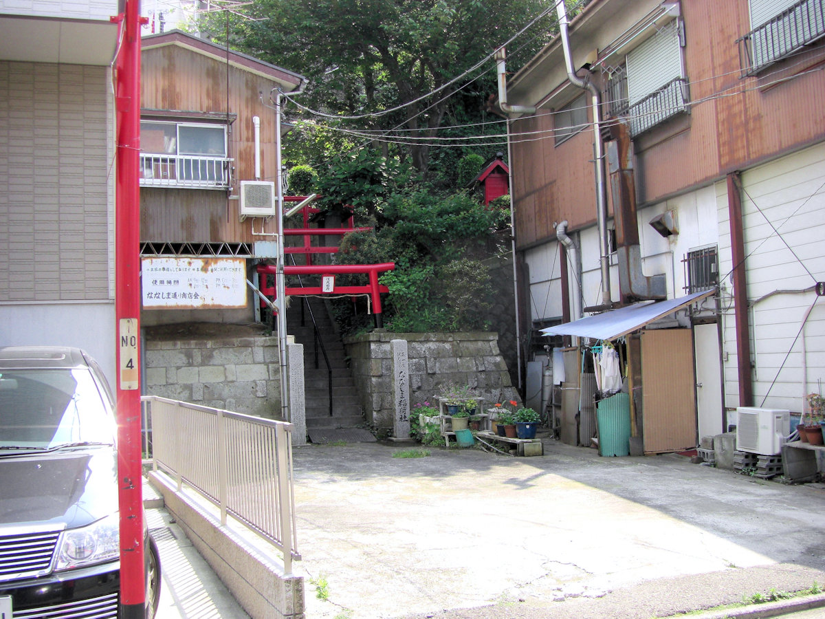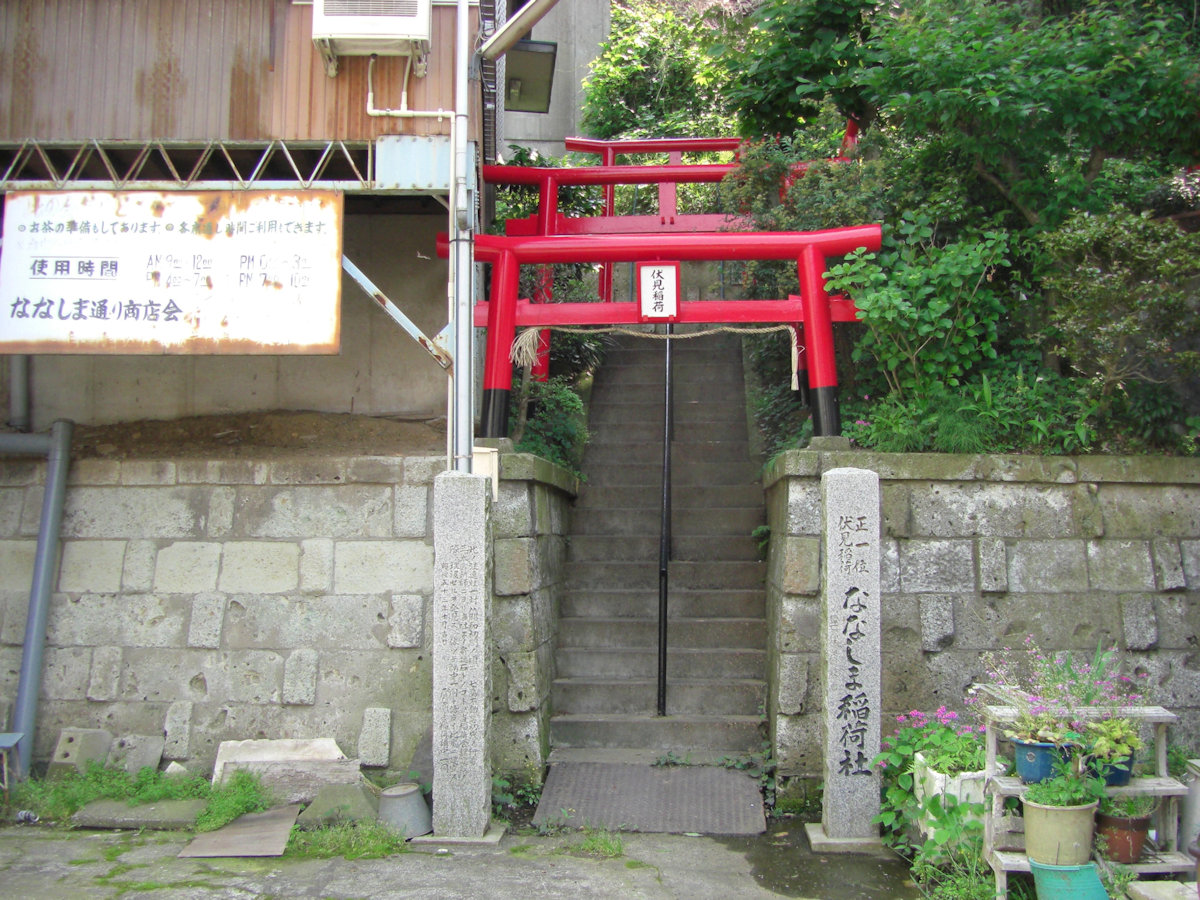商店街を入ってすぐに、「ななしま稲荷」のお神社さんがあります。