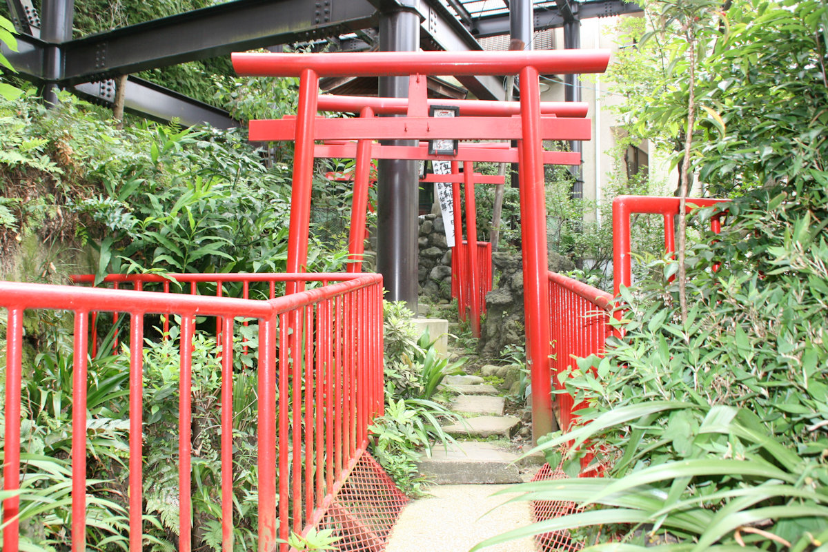 街路灯が赤く塗られており。鳥居のモニュメントが貼ってあります。2月の二の午の日にはご縁日が開かれるとか。そんなに立派ではないけれど、貧弱でもない。売り物になるかと言うと・・・微妙だ。