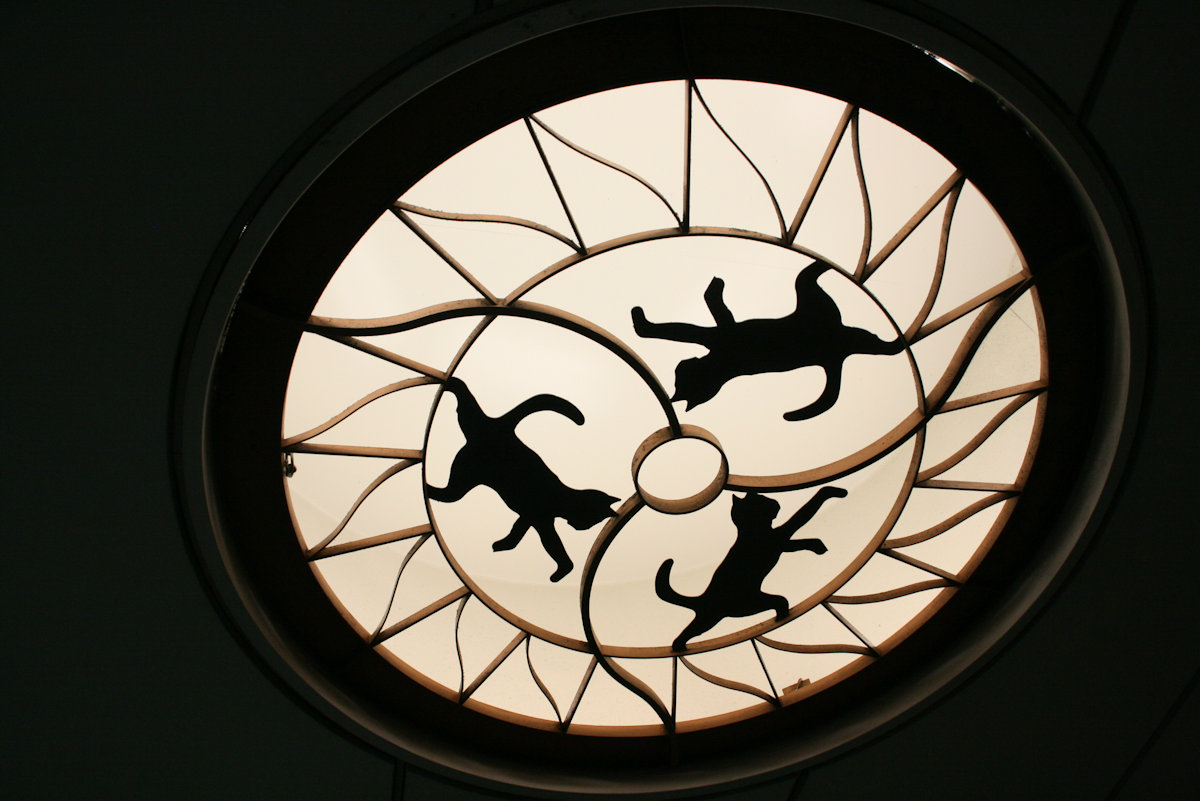 入って直ぐの天井の照明には、3匹の猫が踊って居ます。結構凝っているなと言う感じです。