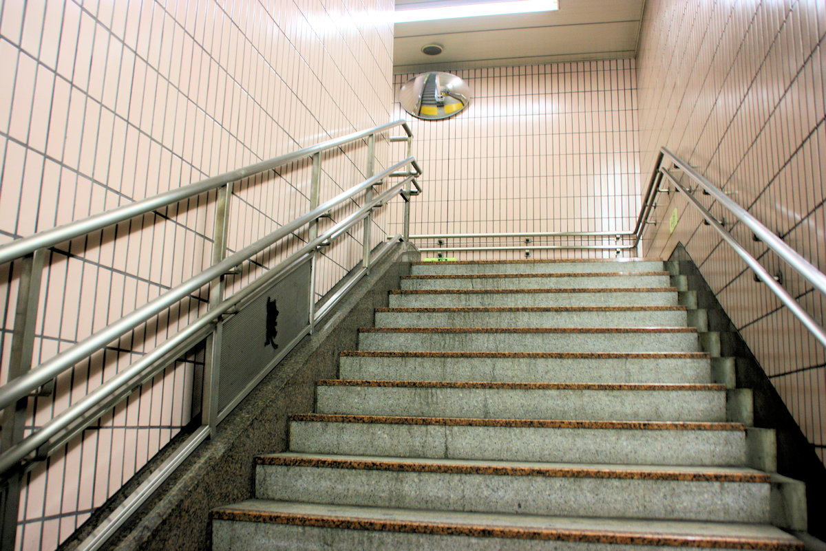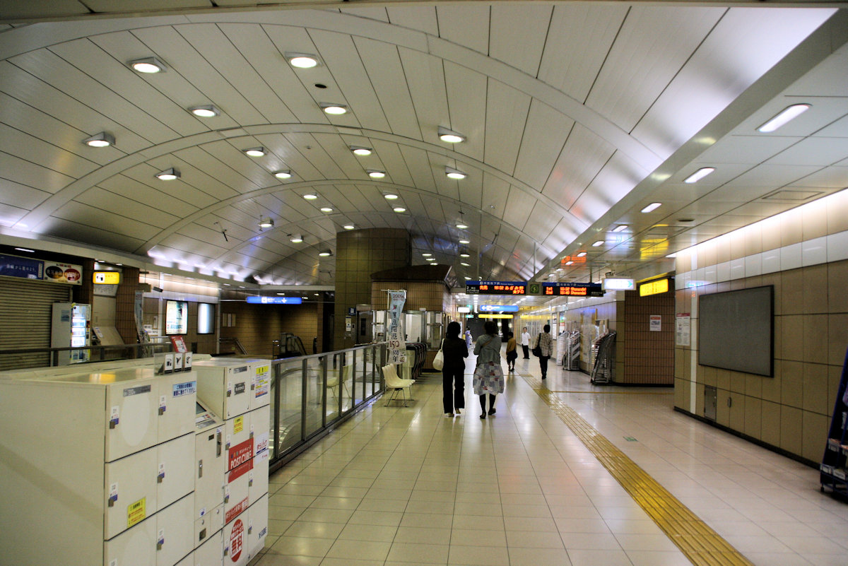 「踊り場駅」の地下部はこんな感じの大きなアーチ状の空間です。上は道路です。ホーム階はこの更に下の空間にあります。