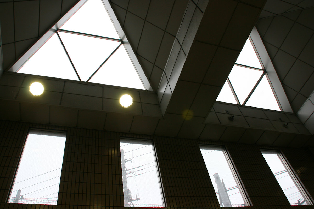 猫町踊場駅 内から見ると縦窓の間が目になっている 2008年6月21日