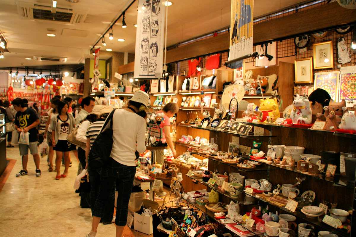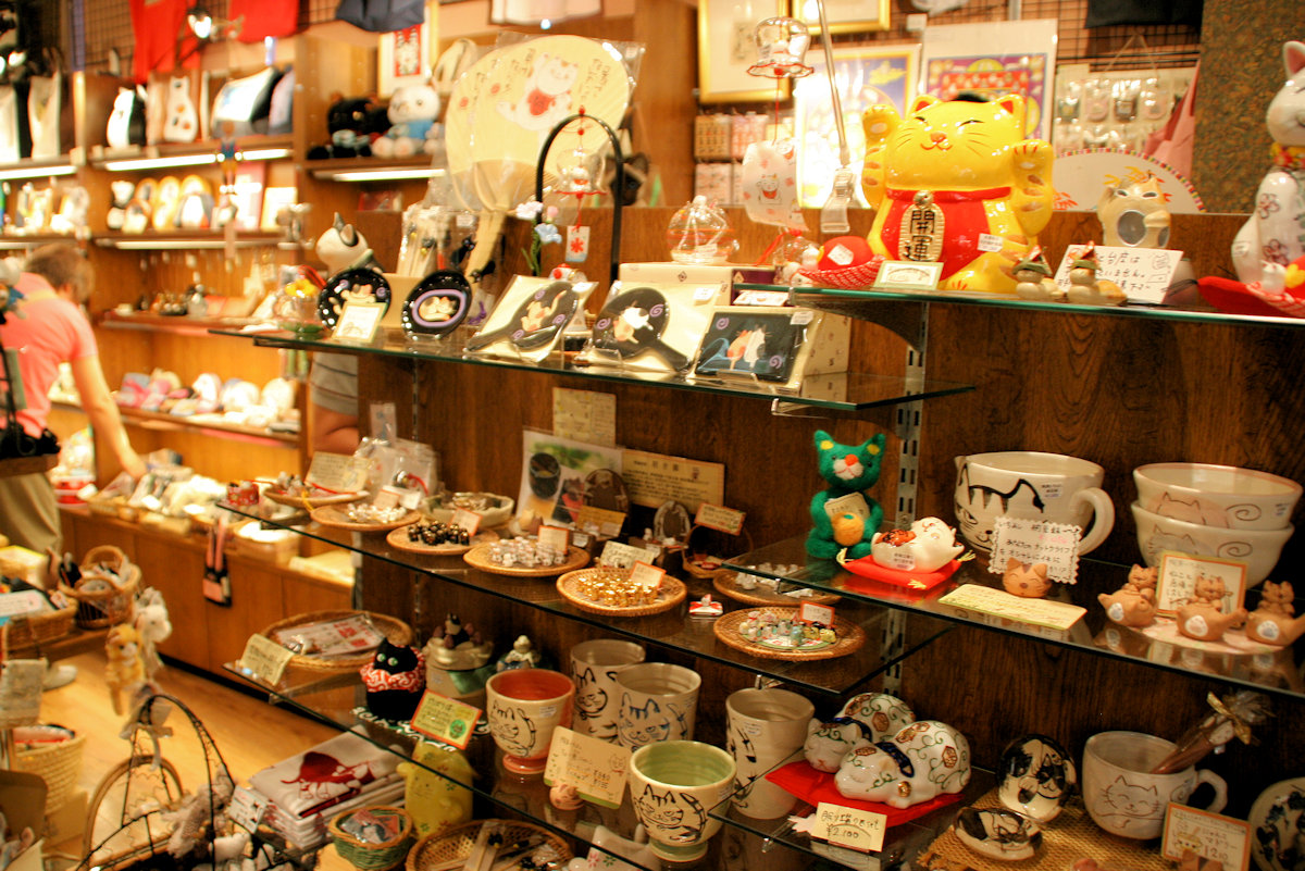 お店の中は小さい招き猫から、バック等々の小物類がずらりとならぶ。 猫好きなら3万円は使っちゃうであろう。パチスロと同じくらい危ない場所だ。