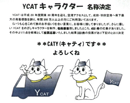 YCATとはYokohama City Air Terminalの略で、横浜から羽田、成田などの空港にリムジン・バスが発着します。昔はもう少し川崎方にあったのですが、現在はビルのリニューアルのために横浜駅東口のスカイ・ビルの中にあります。これもほら、CATって文字が中に入って居るでしょう。
