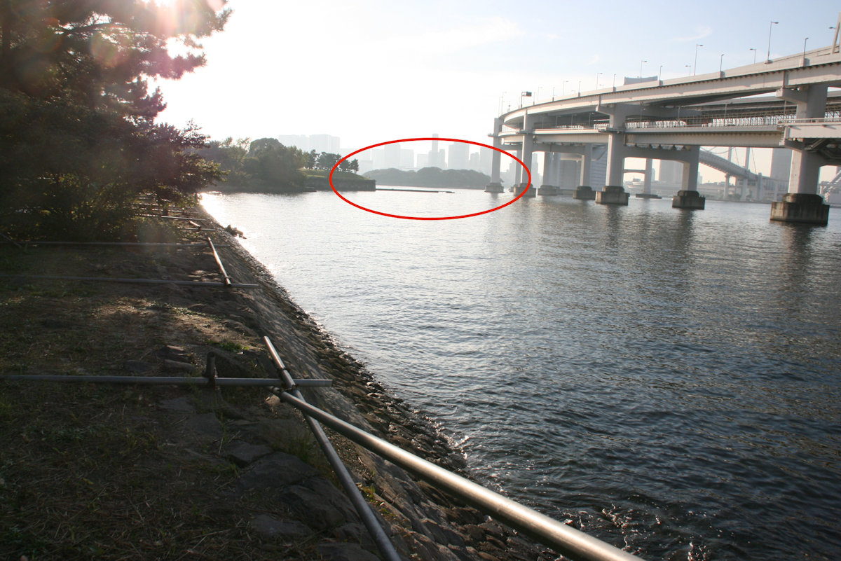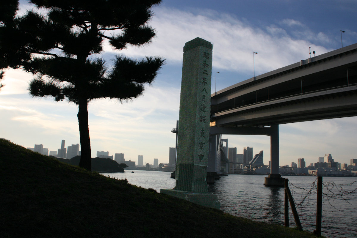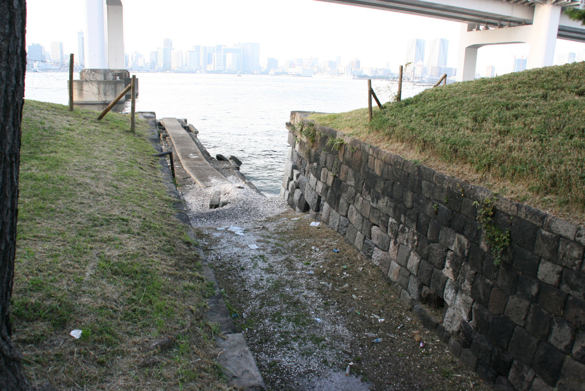反対側はレインボー・ブリッジでこの海の水は意外に澄んでいて、石積が結構良く見えます。