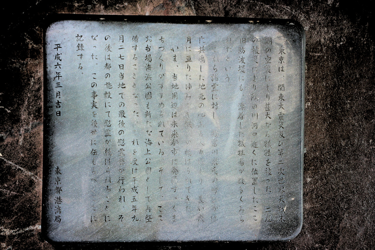 この記念碑には「昭和2年8月建設 東京市」と味気ないことが書いてあるよ。