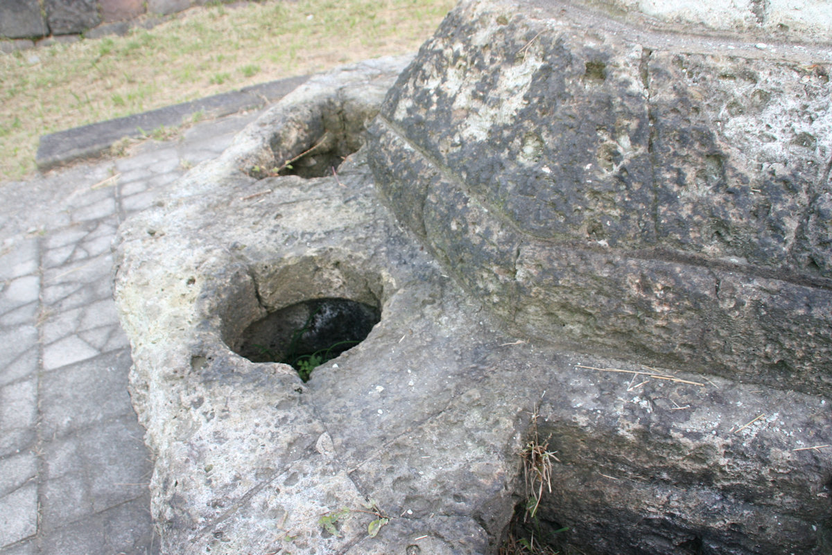 シュールに見える変な竈があります。大谷石製の塔がにょきっと建っている。これは江戸時代ではなく、大正か昭和初期らしい。キャンプでもしたのかな。築塁当時のここは火薬庫として使われていました。