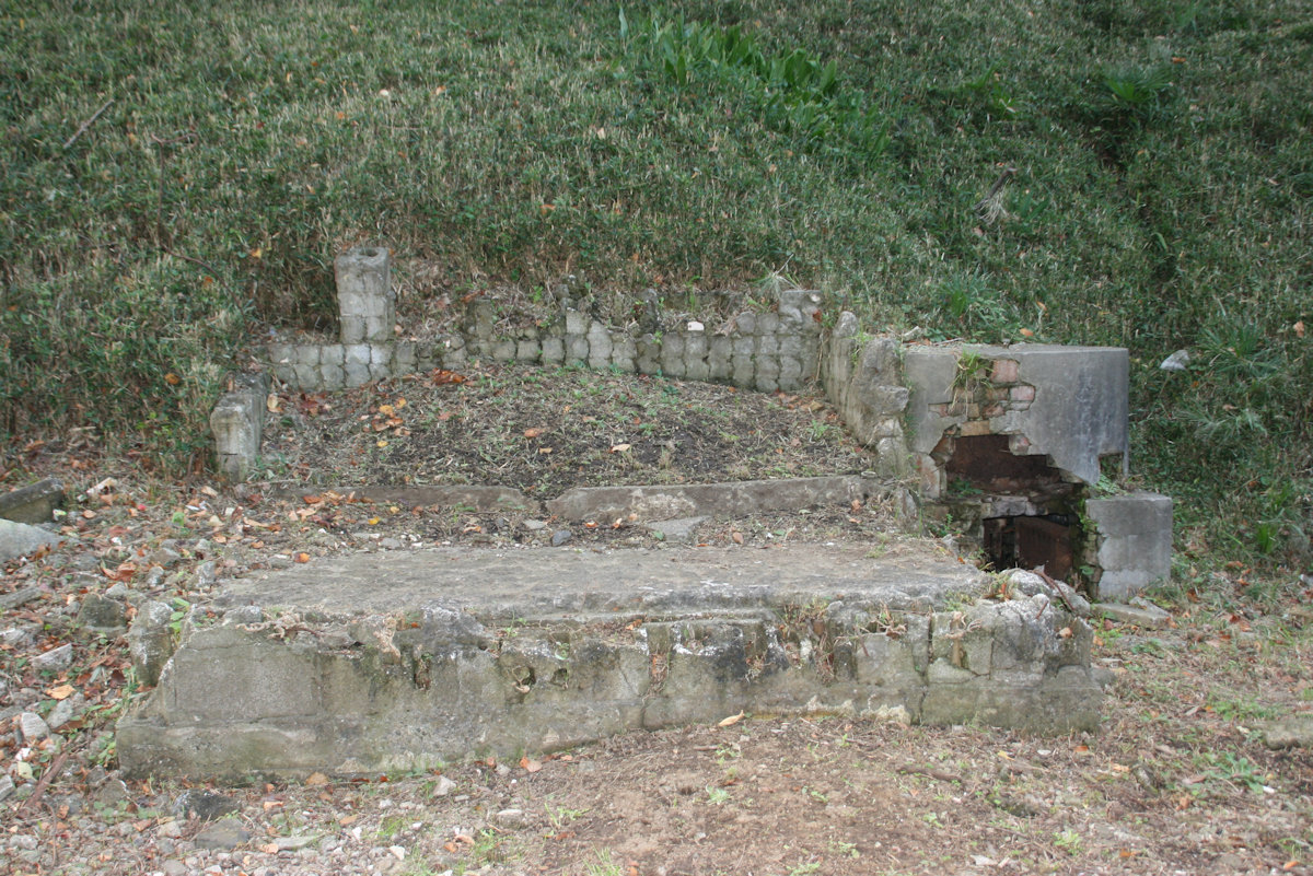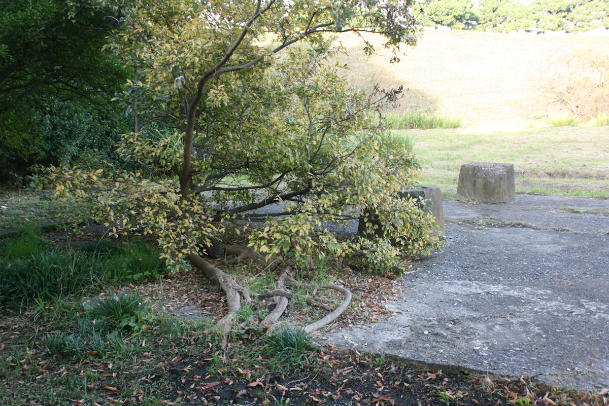 島の北に位置するところ、ちょうど陣屋の裏庭に当たるところに、水道の跡と思しきものがあります。もしかするとキャンプ場として開放されていたのかも・・・。正体が判らない変な跡です。
