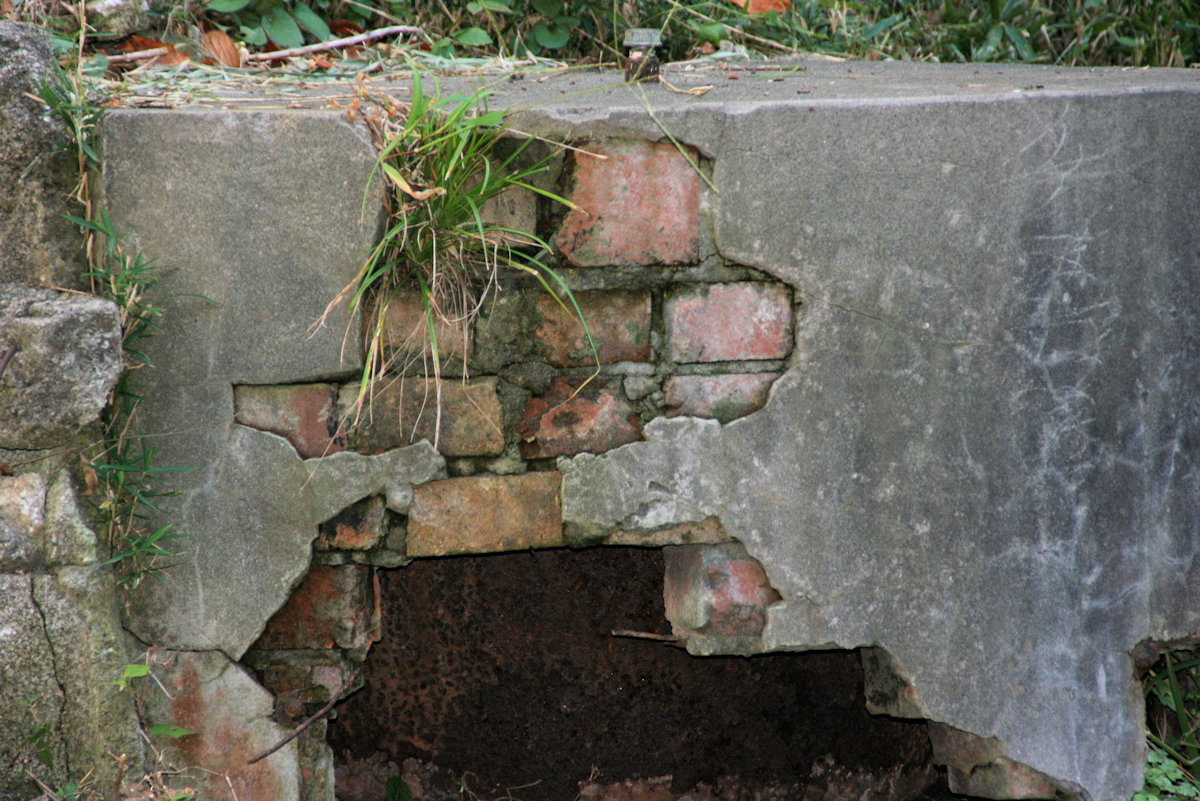 コンクリートと、煉瓦とブロックで出来ている、何かの建物跡のように思える。日清、日露の戦争の時か、大東亜戦争の時のものだといいなあ。でも、そんなに古くは無いと鑑定しました。