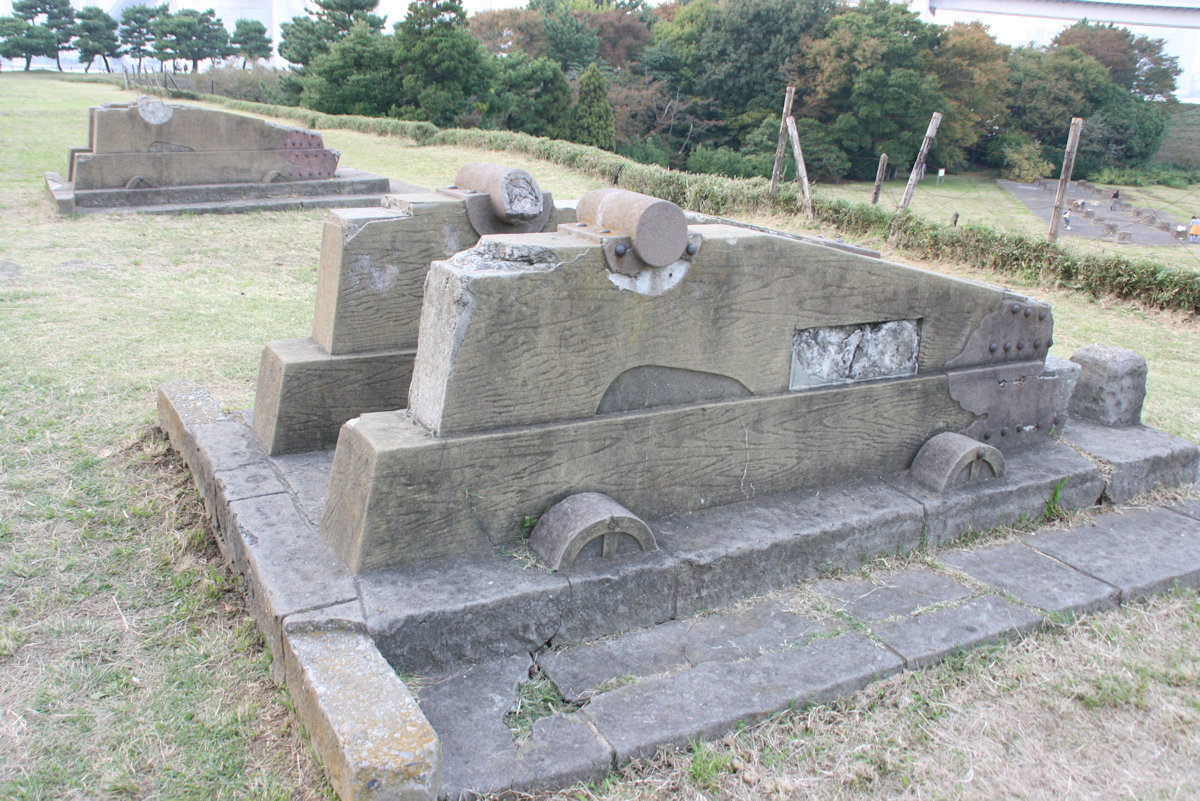味気ない写真は、当時の砲台をイメージしたコンクリートのレプリカ。大砲は折れて亡くなっているし、ペーパークラフトのようなチープさでがっかりです。