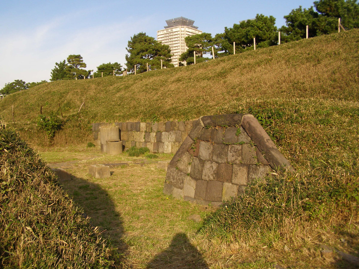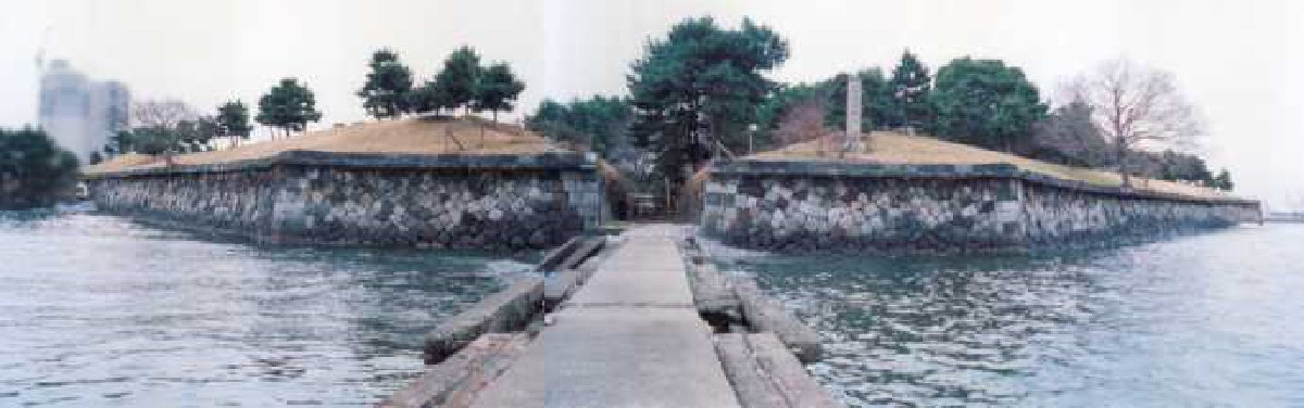 神奈川台場と同様に、海中に石を落としこみ、堤防を作ってから土砂を均すようにして作られましたが、あの当時、工事運搬船も無く石や土砂を正確な位置に落とす工事が、よくできたものです。