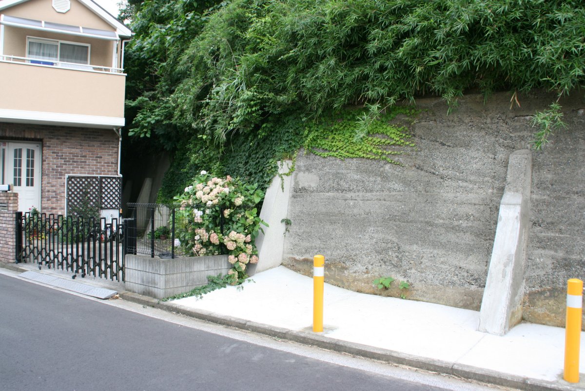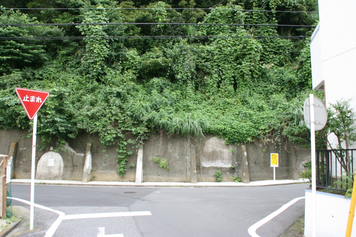子安の防空壕 マンションの脇の擁壁、防空壕は無し (2009年7月10日)