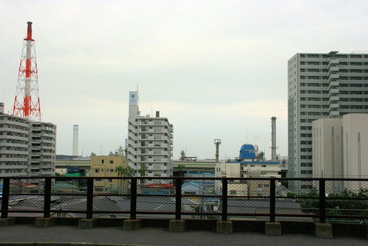 浅野学園から海側を望むと、ENEOSの石油プラントが見えます。住宅が多くなったなあ。高速道路の下にある貨物線についても触れたいけど次の機会に。