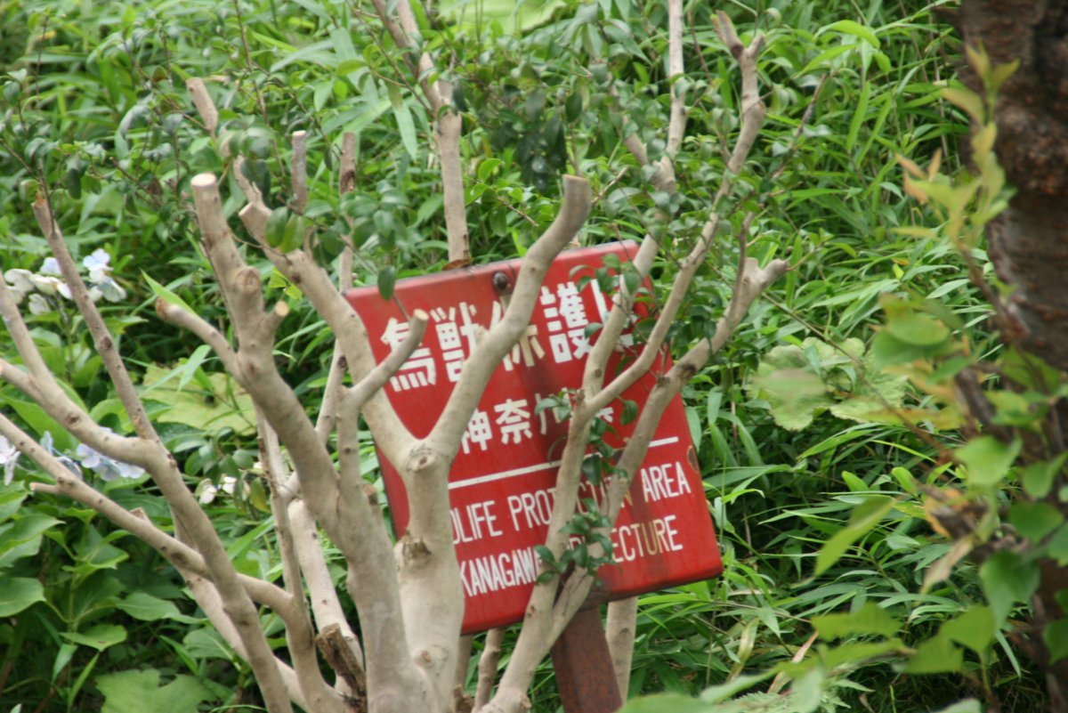 子安の防空壕 鳥獣保護区の看板が!禁漁区じゃないの! (2009年7月10日)