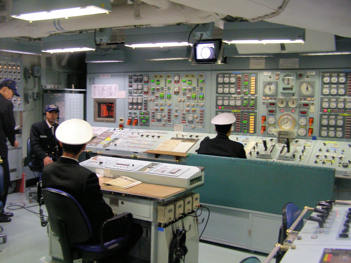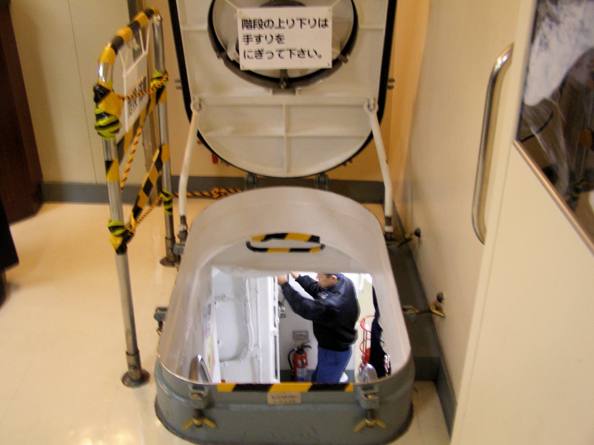 さて船に乗り込んだCacco隊員は、物珍しげにうろうろ辺りを見渡します。甲板から映画などでお馴染みの戦艦の通路(防水扉で仕切られている)や機関室などを見て回ります。ここでの勤務は潜水艦の中の様で閉塞感があります。やはり外が見えたほうが戦闘が起った時には恐くないよなあ。