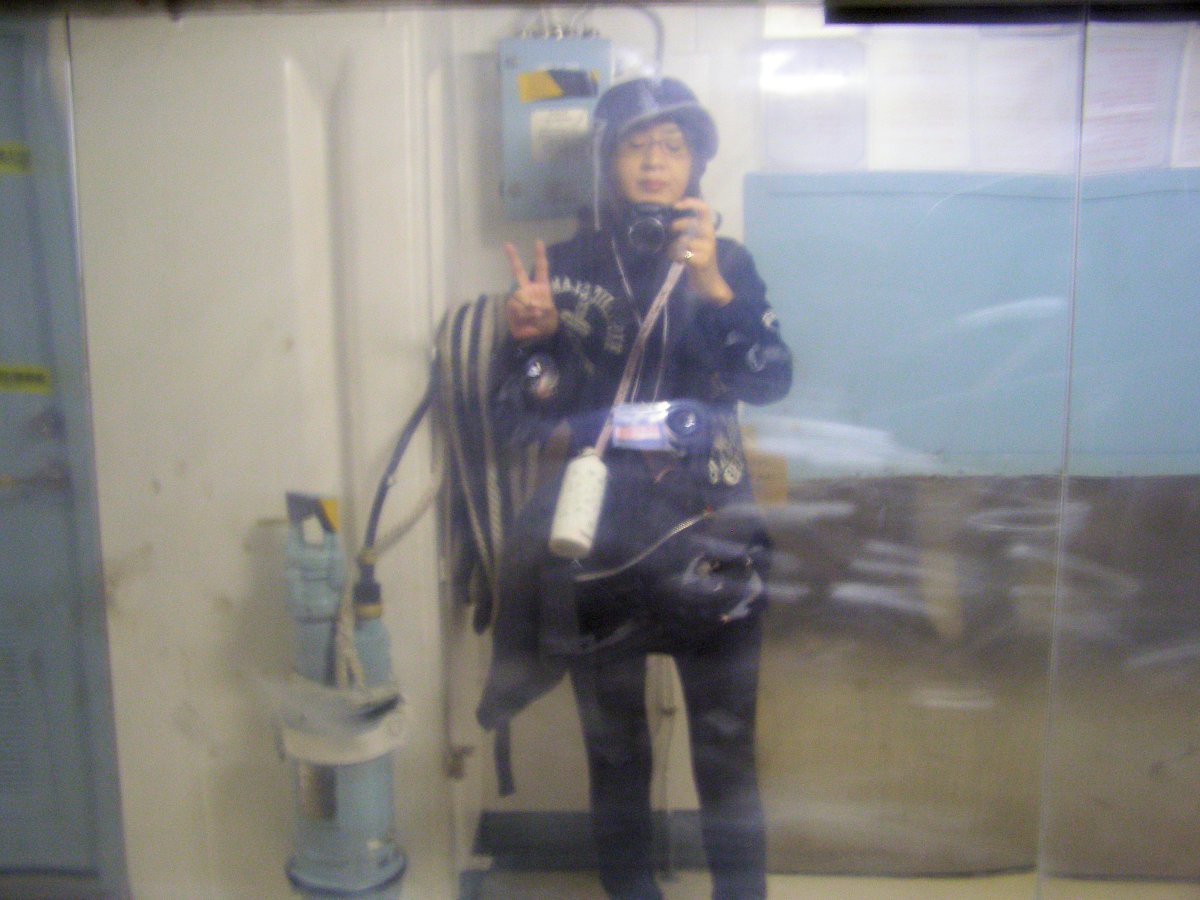 まるで海兵隊員のように重装備のCacco隊員。お得意の自分撮りの一枚。鏡のあるところに行くと直ぐこれですから・・・。