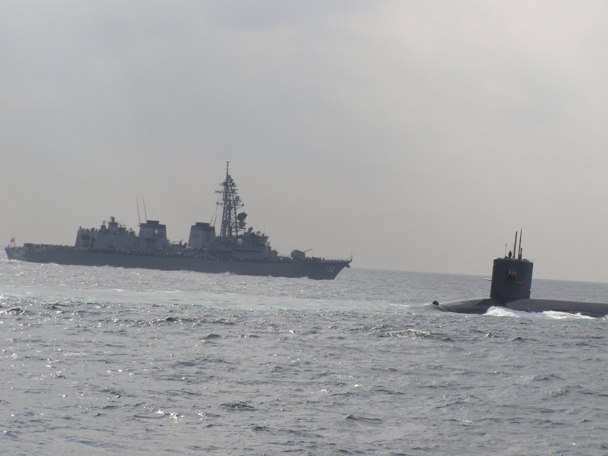 下は護衛艦「まきなみ」と潜水艦「わかしお」のツーショットだ。