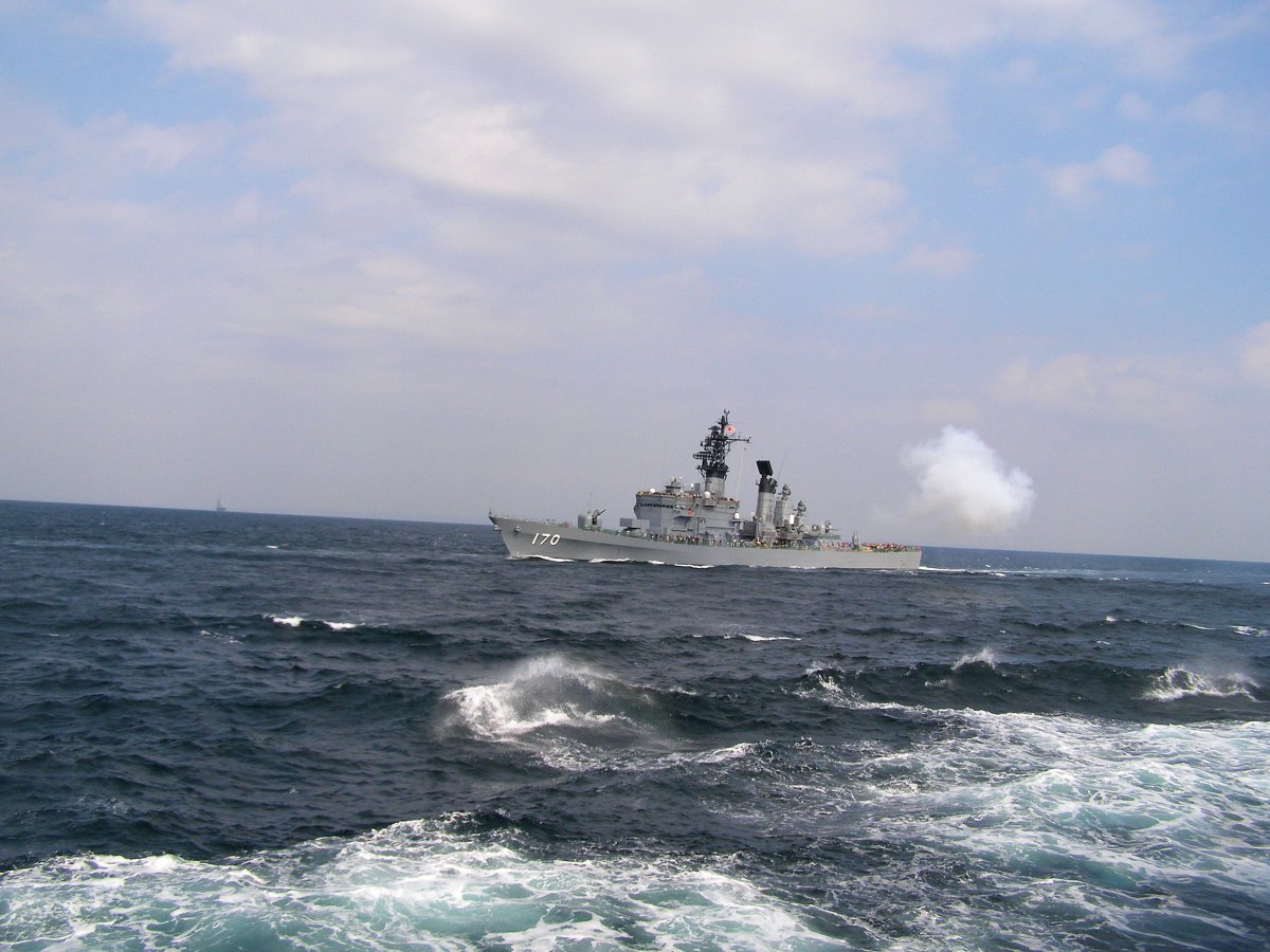 この観艦式が終わった後、2009年10月27日(火曜日)19時56分に関門海峡において護衛艦「くらま」が韓国の貨物船と衝突しました。「くらま」の船首が、コンテナ船に突き刺さった格好で両船とも破損しましたが、民間のコンテナ船のほうが軍艦より強かったのです。