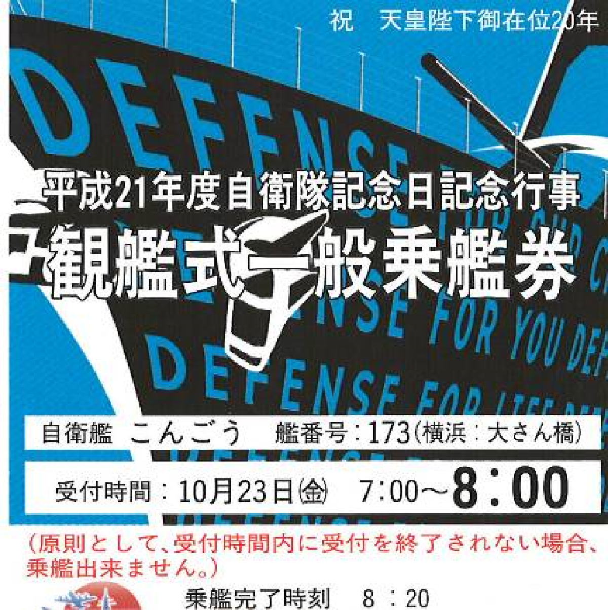 それでこれが観艦式の乗艦券。毎年行っているのかと思いましたが、天皇在位20年を記念してとあるので、平成21年度だけのプレミアムなのかもしれない。